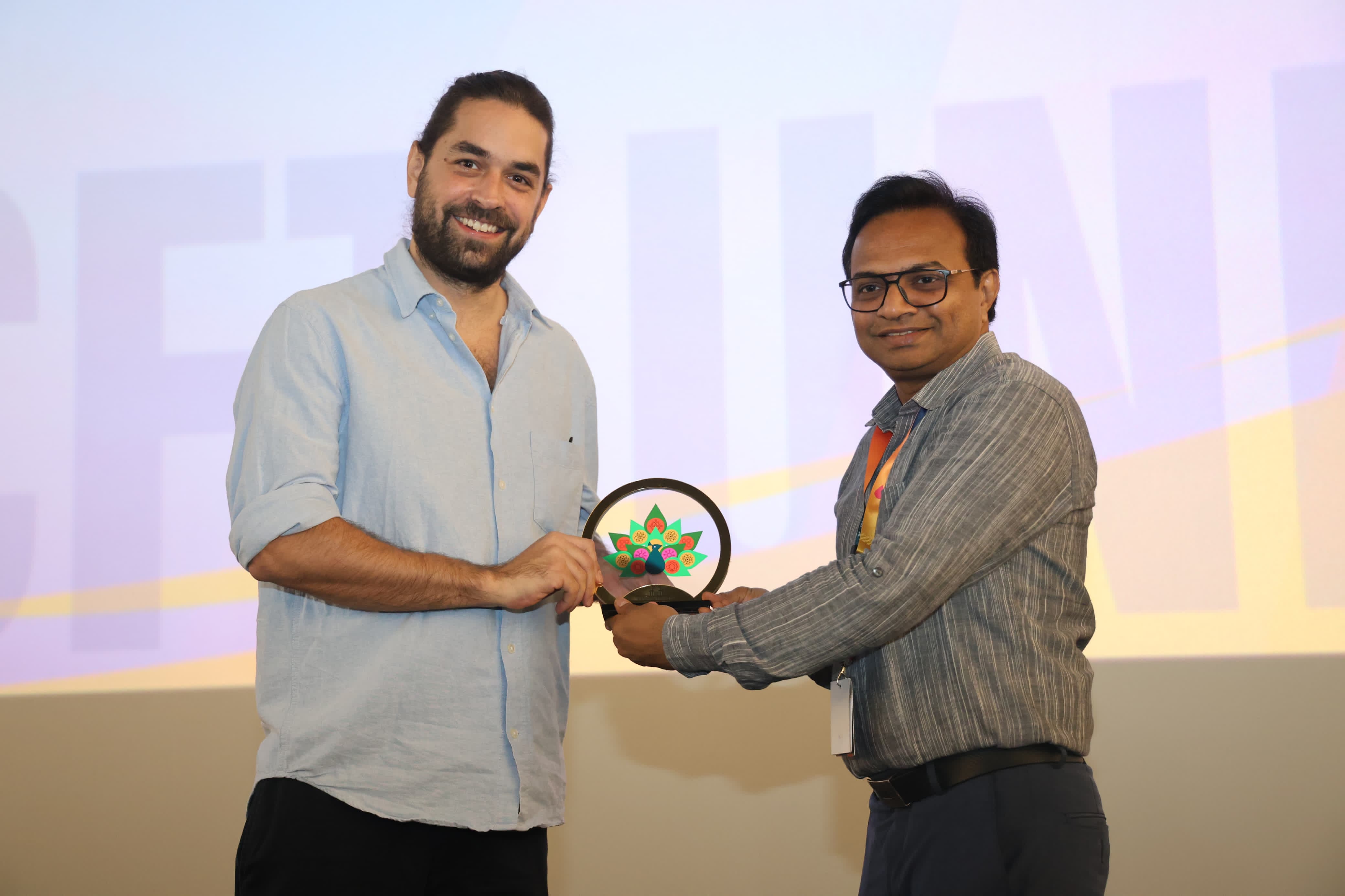 Ajay Dhoke, GM North, NFDC with Director, Bálint Szimler at the screening of film _Lesson Learned_